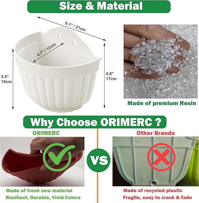 - INDOOR & OUTDOOR USE: vertical wall hanging planter made of high quality durable PP resin material, safe and non-toxic, this polypropylene resin planter is a tough, lightweight , all-weather durability with UV protection for outdoor use, an alternative to clay or ceramic planters. Install drainage plug when used indoors. SIZE (L*W*H): 8.1"x4.7"x6.8"; 10 x screw of stainless steel, 10 x S hook of stainless steel,10 x self-adhesive command wall hook included.