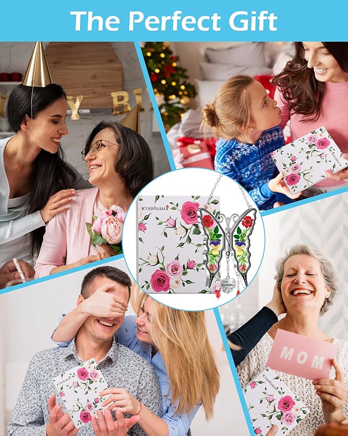 - ✅❤ Attractive and Uniquely House to live in Home decor Designed :Perfect birthday Gifts for Mom from daughter,Mom birthday gifts,Gift for Christmas Mother’s Day,Gifts for women who have everything,God bless mother in-law gifts,Nana Gifts,grandparents day gifts,As a festival gift or decor on Birthday party, Thanksgiving, Valentine`s Day,Stained Glass Panels crystal prism suncatcher for window hangings,Top gifts for women butterflies Mom gifts for daughters garden decor,and You will receive a pink rose flower color boxes packing with a butterfly suncatcher, painted enamel butterfly and a complimentary suction cup with hook,The carries a tag with " I Love You Grandma" engraved on it.