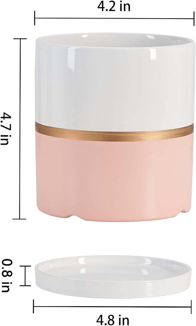 Ekirlin 4 inch Plant Pot - Ceramic Flower Planters Indoor - Modern Succulents Containers with Drain Hole Saucer, Decorate Home, Office & Outdoor (Pink)