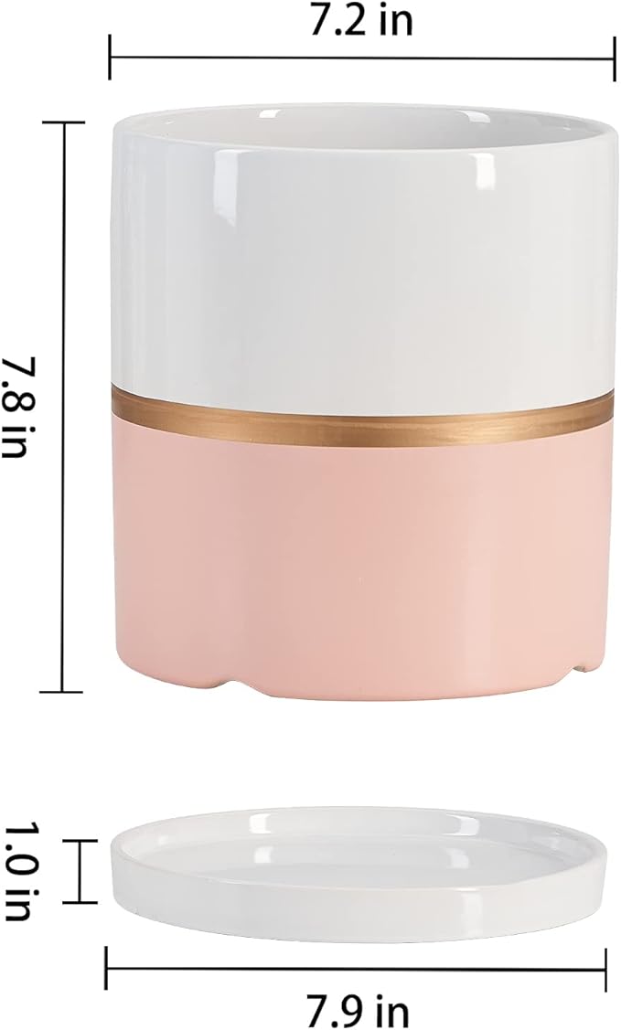 Ekirlin 8 inch Plant Pot - Ceramic Flower Planters Indoor - Modern Succulents Containers with Drain Hole Saucer, Decorate Home, Office & Outdoor (Pink)