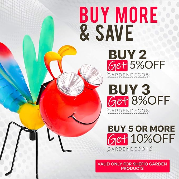 - Create ambiance in your garden with our dragonfly solar stakes. Their delicate wings illuminate with a warm glow at sunset, adding whimsy to outdoor decor.