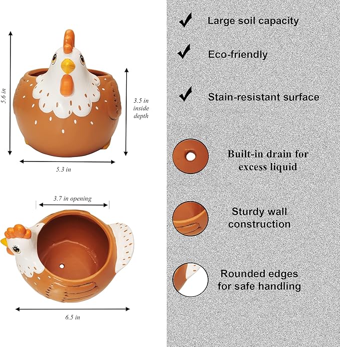 - ✅GROW A HERD OF HERBS and succulent plants with this whimsical chicken-themed succulent planter set. Featuring adorable chicken pot that measure 6.5” x 5.3” x 5.6”, it is the perfect way to grow plants, flowers, or fresh cooking herbs while complementing your country kitchen décor.