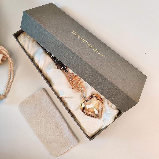 - INCLUDES - Jewelry Crystal Pendant + Champagne Heart K9 Crystal 1.77" + Stainless Steel Chain 15.5". Our pendant and crystal are detachable, so you can DIY your GOLDENHAITAI suncatcher