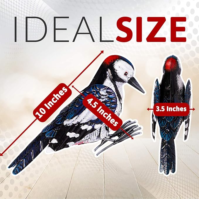 - Crafted from durable metal, this outdoor metal woodpecker is weather-resistant for lasting enjoyment as a woodpecker yard decoration. Its vibrant, lifelike details enhance any garden.