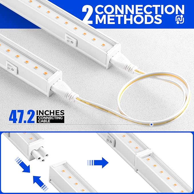 - Easy Install - With included Double-sided Tape, clips and cable ties, you could install the led grow light strips by yourself in minutes. Plug and play, and you could link up to 8 grow lights fixture in a series, saving your installation time