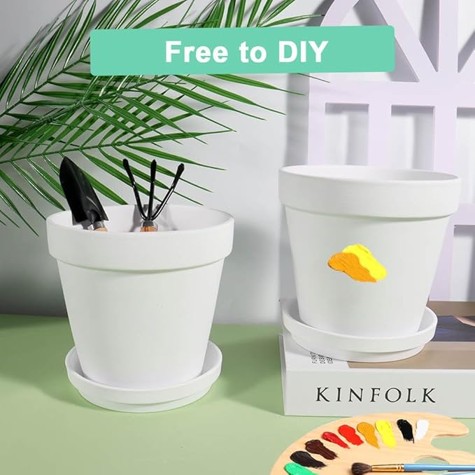 - 【Drainage Holes and Saucer】Each terra cotta with paintcomes with a small drainage hole at the bottom, increasing drainage efficiency when watering, protecting the health of your plant. And the saucer can keep your indoor or outdoor clean.