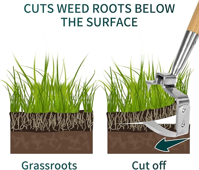 - WIDE APPLICATION - The swinging lawn mower has forever changed the way gardeners weed, inflate, cover and grow their gardens. It works by using a push-pull motion to cut the grass roots deep below the surface. The tool can reduce the weeding time by half.