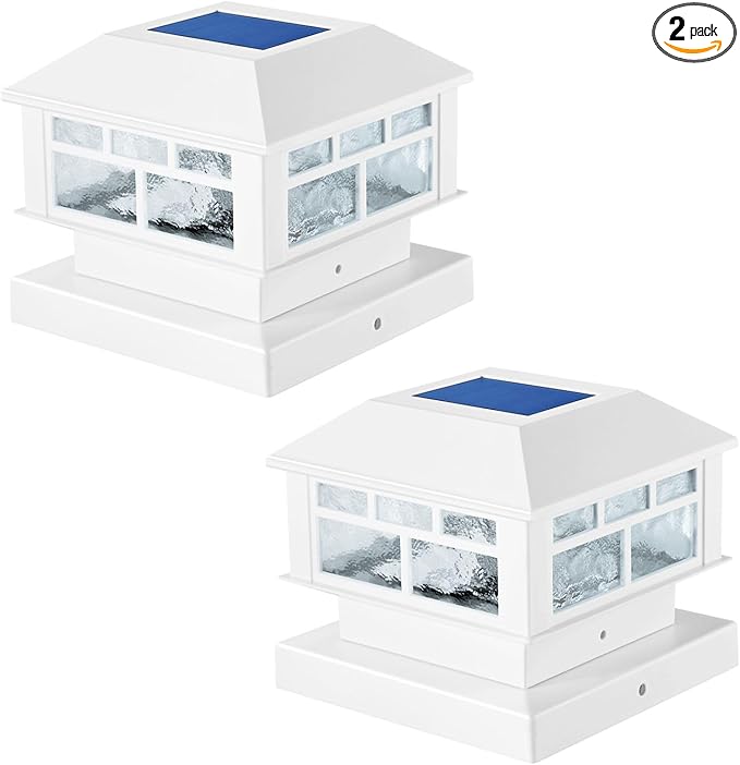 - 【Note】These solar post lights measure 5.3" x 5.3" x 4.6" and have 20 lumen per light. The high-capacity 1.2V AA NI-MH 600mAh battery ensures extended lighting.If there is any problem with the Solar Post lights, please feel free to contact us. 1 year warranty and 24 Hours customer service.
