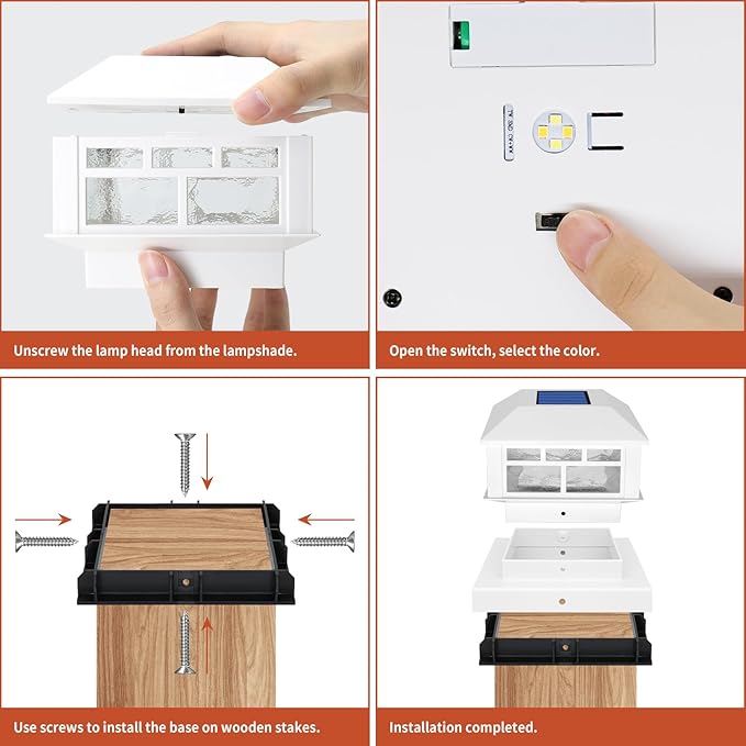 - 【Save Energy】Outdoor waterproof LED lights for fence posts charge in the sun for 4-6 hours during the day and automatically light up at night for 10+h continuous lighting.Solar-powered outdoor deck lights without wire save labor and power costs while being environmentally friendly.