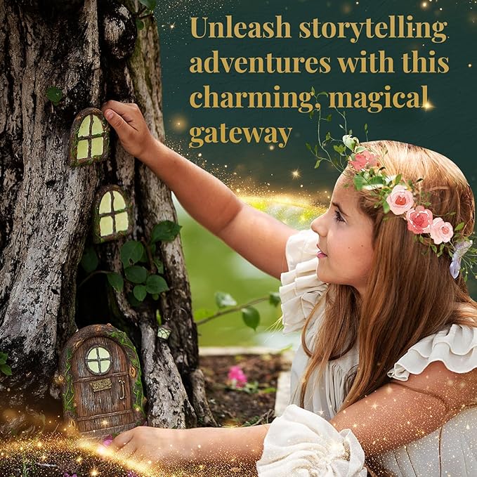 - Magic fairy door kit: Create a whimsical and enchanting fairy garden with our Fairy Garden Kit. This kit includes everything you need to bring your fairy dreams to life, including a fairy door , glow two the dark windows, and a little lantern. Transform your outdoor space into a magical realm with these fairy house decor and fairy garden accessories. Let your imagination soar as you create a tiny treehouse for your fairy friends using our fairy door kit. This fairy houses for outside is perfectly sized for bringing your garden to life.