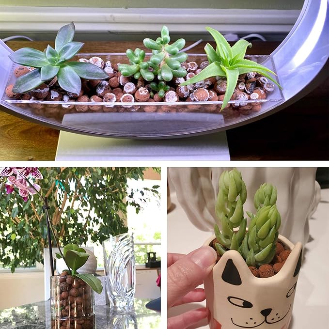 - 🌵Healthy Environment: Clay Pebbles can offer excellent aeration, hold water, and free-draining, which provide good oxygen content around the root and make it more healthy to grow. It will save your plants from the moss that chokes their root system.