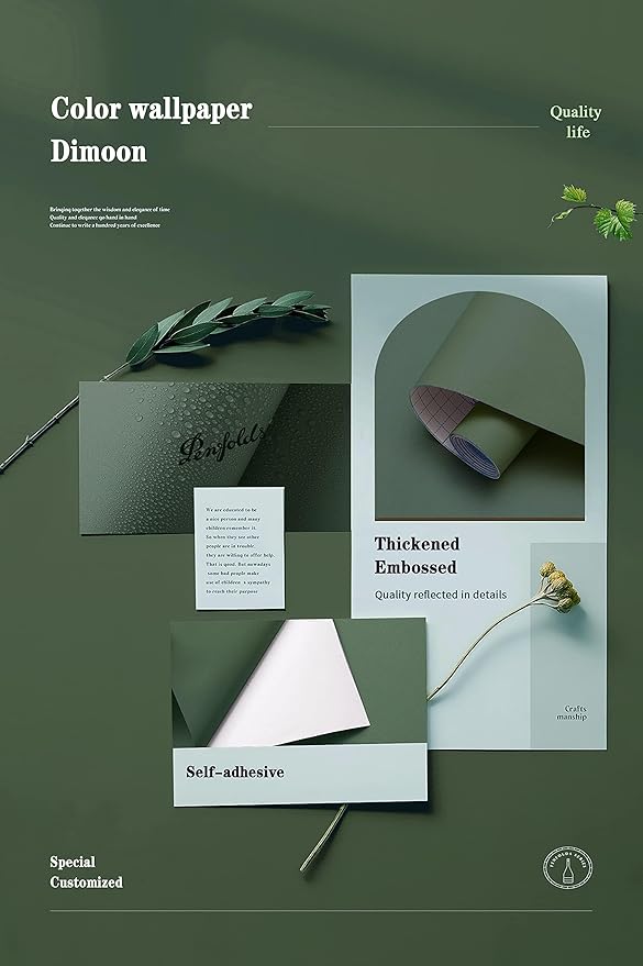 Dimoon 236''x17.7'' Green Peel and Stick Wallpaper Contact Paper Modern Self Adhesive Wall Paper Removable Renter Friendly Textured Solid Color Shelf Cabinet Vinyl Roll (236''x17.7'',Dark Green)