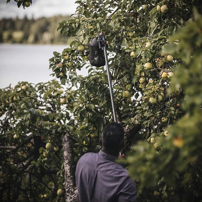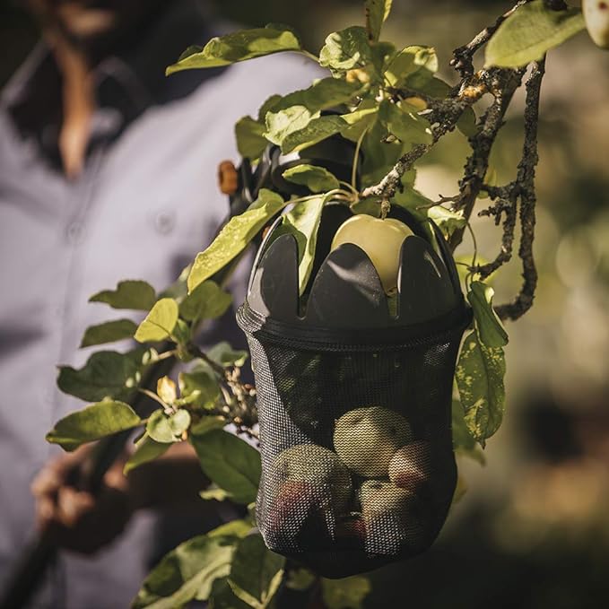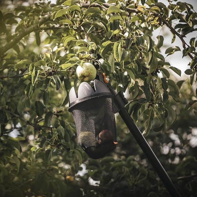 - Fiskars Fruit Picker Basket harvests fruit from tall trees without bruising or scratching