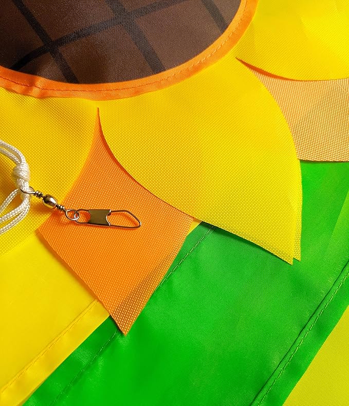 - DESIGN & DIMENSIONS - This windsock features a vibrant sunflower design in bright yellow on both sides, complemented by four tails in yellow and green. With a length of 42 inches, it is versatile enough to be easily hung in multiple locations.