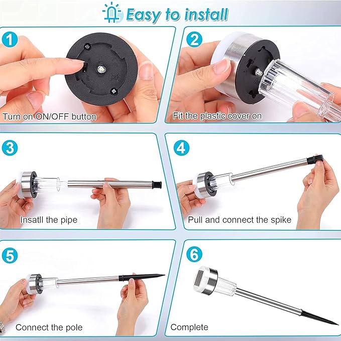 - EASY TO INSTALL & USE: No addition tools and wires required to install this solar powered landscape light.Just assemble them and insert them into the ground,it is environmental protection and saving
