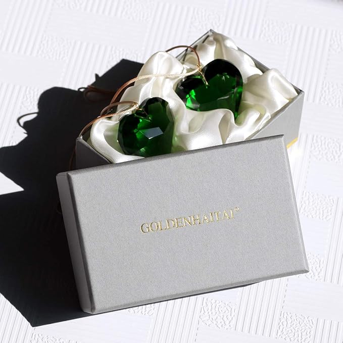 Green Heart Crystal Suncatcher, 2pc 45mm Hanging Prism for Windows, Outdoor Indoor Decoration, Rainbow Maker Gifts for Mom, Grandma, Friend