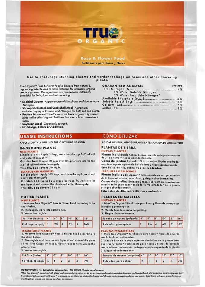 - Vibrant Blooms and Foliage: True Organic Rose & Flower Food promotes stunning, lush blooms and healthy foliage for roses and all flowering plants.