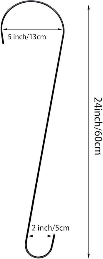24 Inch Large Tree Branch Hooks, 6 Pack Extra Long Metal Black S Hooks for Hanging Plants, Garden Hooks for Hanging Bird Feeders,Plant Hooks Outdoor Hanging Basket-Outdoor or Indoor Use