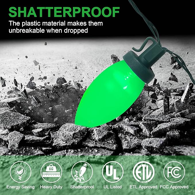 - 🎄 SAFETY GUARANTY - UL Listed, IP55 waterproof level for outdoor & indoor use; Bulbs are virtually unbreakable, and colors never fade, chip or crack.