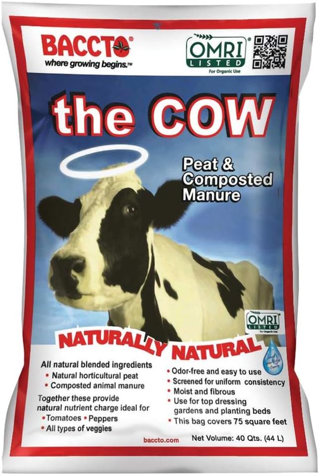Baccto 1640 Wholly Cow Horticultural Compost and Manure for Soil Amendment, Lawn Care, & Garden Beds, 40 Quart Bag (4 Pack)