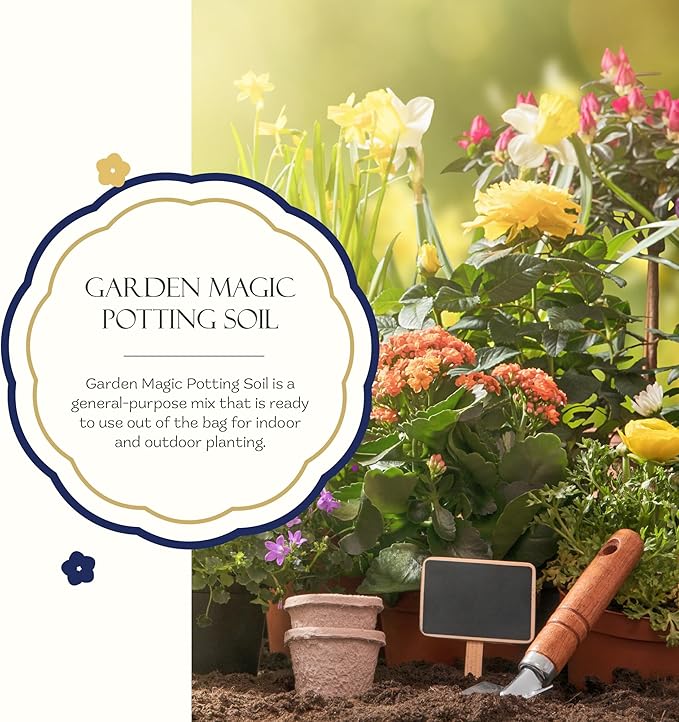 - Rich Garden Soil: This 4 pack of Garden Magic potting soil is ideal for starting a garden or potting your favorite plants. It features a blended formula perfect for indoor and outdoor plants.