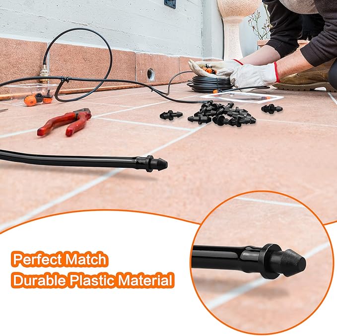 - 【EASY TO INSTALL】It is easy to install without any glue, tools or clamps. Directly insert this irrigation tubing end at the ends of the water pipe, the barbed ends can grab 1/4" tubing tightly for a secure leak-proof connection.