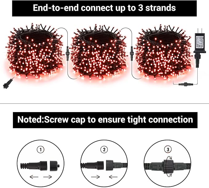 - 【Waterproof & Connectable】The Christmas twinkle lights is IP44 waterproof, can be used for indoor & outdoor decoration ( The power adapter is not waterproof, should keep it dry when used outdoor). Our indoor string lights end to end connectable, up to 3 sets (Total Length: 342ft), long enough to meet your creative lighting decor needs