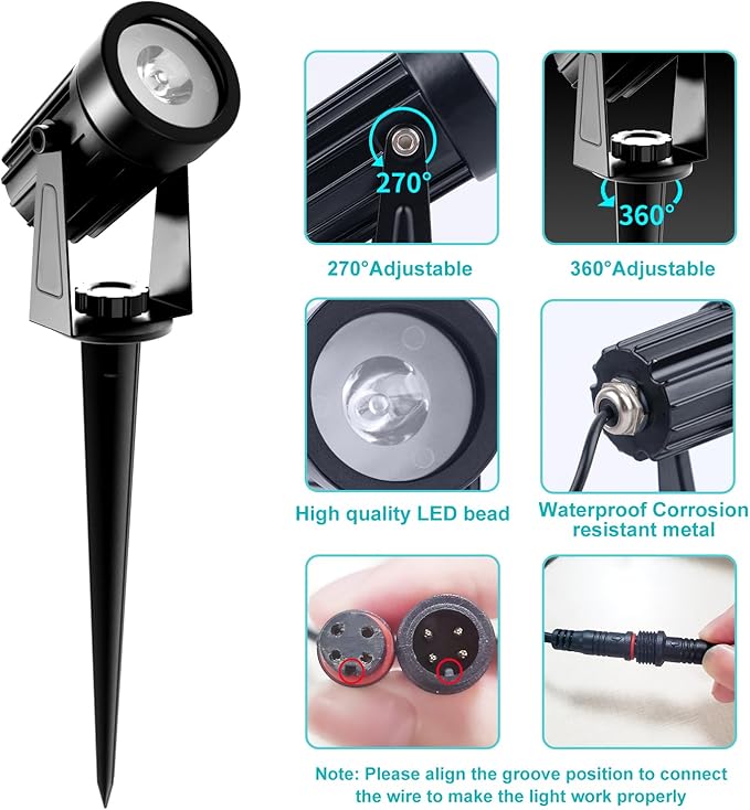 - 【Daisy Chain】About 20ft long in total, 10ft long from plug to first light, 10ft long between lights, fully covering your yard, it's not only able to illuminate your desired spot but also to get optimum sun exposure.