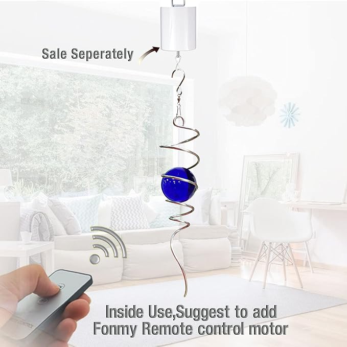 FONMY Gazing Ball Spiral Tail -Decorative Wind Spinner 11" inch Tail and 2" inch Blue Glass Orb. Indoor Outdoor Garden Decoration -13 inch Height