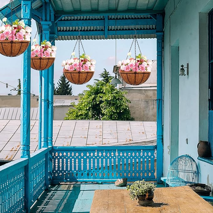 Hanging Planters Basket Outdoor Indoor(14 inch 4 Pack)-Coconut Coir Hanging Baskets for Plants Outdoor,Metal Wire Baskets with Coco Liner Window Box Planters, hanging Flower Pots For Railingsā¦