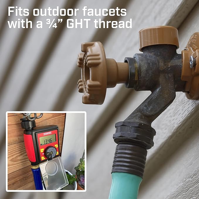 - OUTDOOR USE: fits faucets with a ¾” GHT thread then connect your garden hose; use with inline sprinkler systems, standard sprinklers and other irrigation equipment