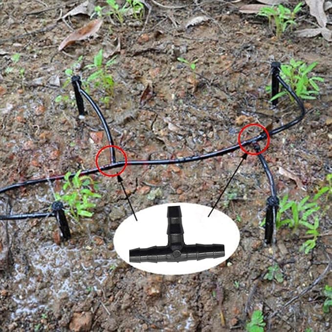 - Note: Please confirm your size before purchasing. These irrigation kits are designed with barbs and can be used to connect 1/4 inch drip irrigation pipes. Please check the size carefully before purchasing;If needed, you can use a heat-gun or blow dryer to soften the end of the tubing before inserting