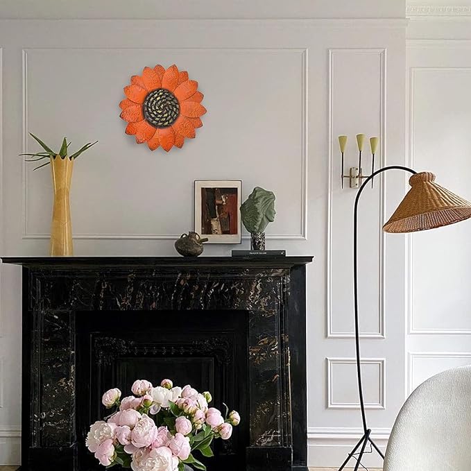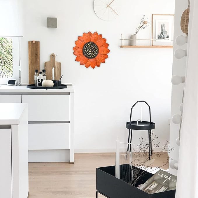EASICUTI Orange Sunflower Metal Flowers Wall Decor Metal Wall Art Decorations Hanging For Indoor Outdoor Home Bathroom Kitchen Room Bedroom Living Room Garden Patio Porch 13 Inch