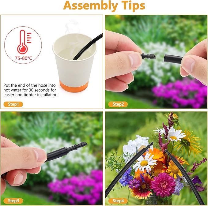 - ✔【Easy to Install】: This coupling fittings for 1/4 inch irrigation tubing is easy to be installed without glue, tools, or clamps. Push the tubing firmly over the tee fitting.Tips:Put the tubing end into 75°~80° hot water for 30 seconds before pushing them.