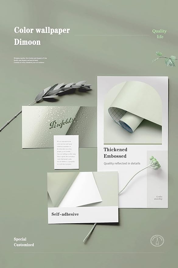 Dimoon 394''x17.7'' Green Peel and Stick Wallpaper Contact Paper Modern Self Adhesive Wall Paper Removable Renter Friendly Textured Solid Color Shelf Cabinet Vinyl Roll (394''x17.7'',Palegreen)