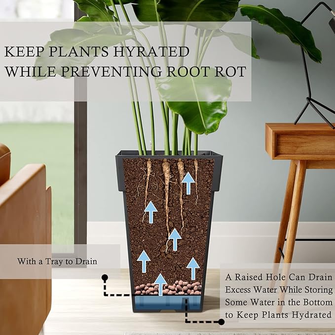 - 【WEATHER RESISTANT】These tall planters are made of PP resin plastic which will withstand the test of time and weather--intense sun and harsh winter temperatures, to use it indoor or outdoor