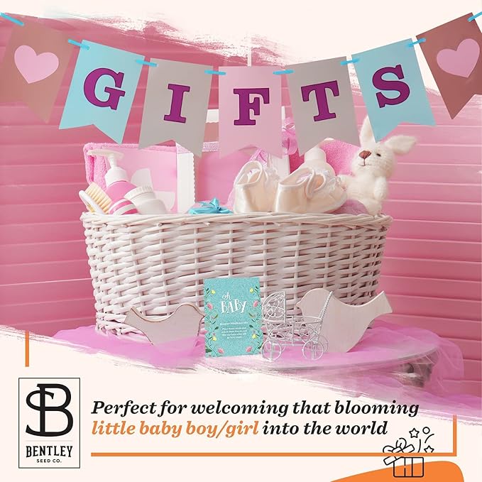 Bentley Oh Baby Wildflower Seed Packets, 25 Non-GMO Pre-Filled Favors for Baby Shower Guests, Wild Flower Party Gifts for Boys or Girls