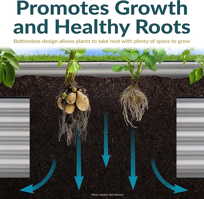 - PROMOTES HEALTHY PLANTS: The raised metal garden bed improves soil structure and drainage, reducing the risk of waterlogging and root rot. The elevated design keeps soil warmer and less compacted, promoting faster germination and stronger root systems. The garden bed also provides plants with better aeration, access to nutrients, and protection from common ground-level pests for more better growth and higher yields.