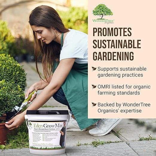 - Organic Pellet Fertilizer - the Eden Grow Max Organic Fertilizer is raised and harvested with organic certified techniques and includes essential organically enriched plant nutrients for healthy soil, promoting growth and producing healthy food.