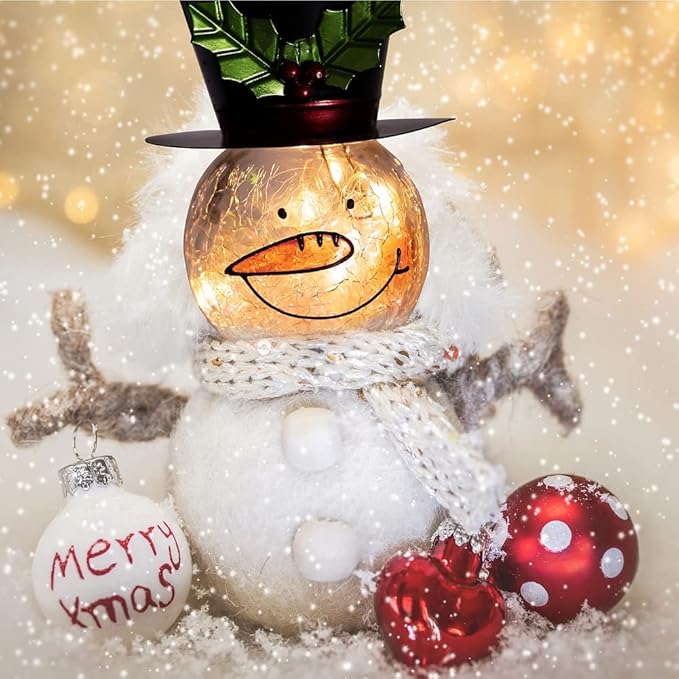 - 【Snowman Lantern】Cute snowman solar lantern light is a great snowman outdoor Christmas decorations. It wears a black metal top hat and a warm smile under the carrot nose, adding a touch of warmth to us in the cold winter. Merry Christmas and Happy New Year!