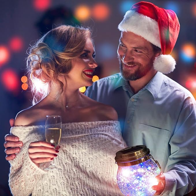 - 【Waterproof IP65】The solar outdoor lantern jar is made of cracked-style glass and has a unique style of innovation and fashion. The lamp cover is made of stainless steel and solar panels. Facts have proved that the IP65 waterproof grade can withstand bad weather, such as sunny, rainy, and snowy days