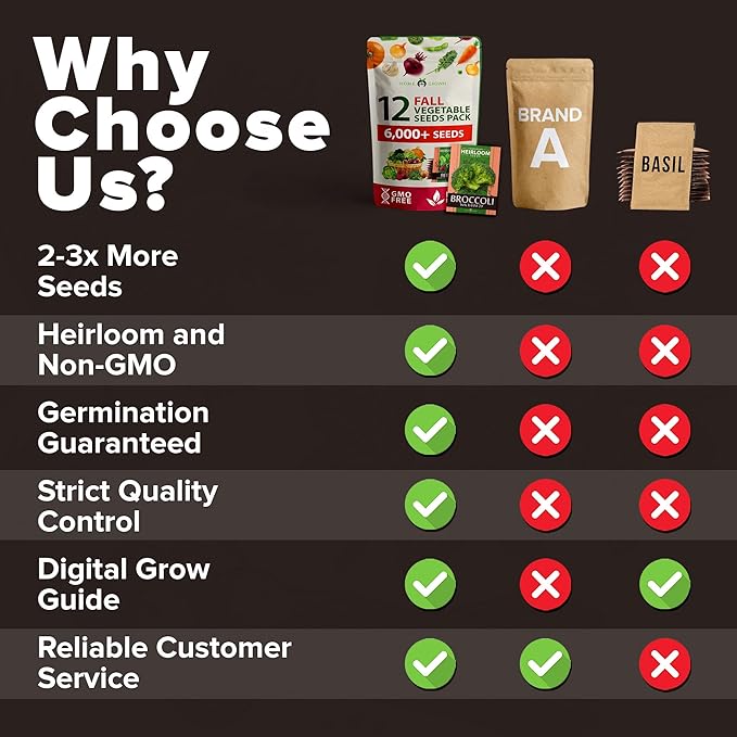 - EASY TO SOW & GROW - We have selected vegetable seeds that are easy to plant and grow in fall. With these heirloom seeds you are guaranteed 85%-90% germination rate and better quality harvests. Fall gardening made more enjoyable for you.