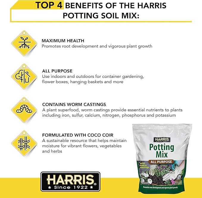 Harris All Purpose Premium Potting Soil Mix with Worm Castings and Other Nutrients, 4 Quarts