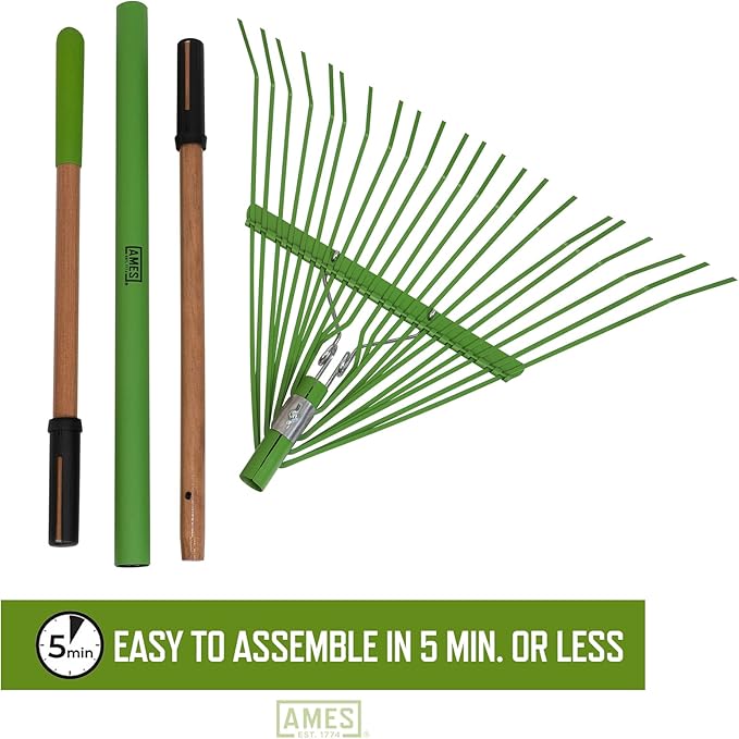 AMES 20201033 Steel Tine Leaf Rake with Hardwood/Steel Handle, 22 Tines