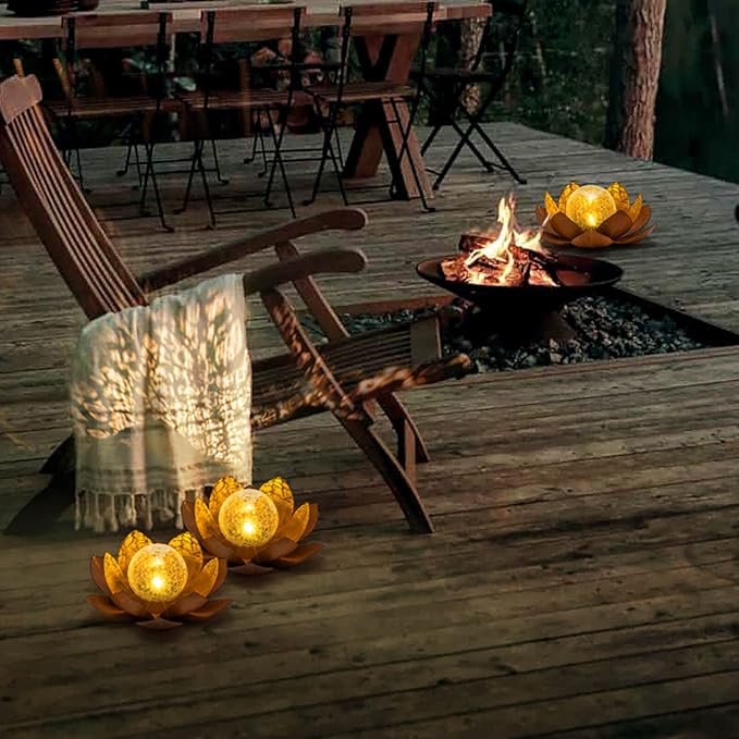 Huaxu Solar Lights Outdoor Decor Metal Lotus Flower LED Waterproof Glass Decorative Gifts for Garden Lover Women Mom Table Pathway Lawn Patio Yard Ground