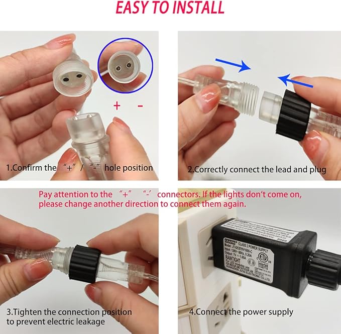 - [High Quality LED Lights]Our Christmas string lights are made of high quality transparent PC material with good light transmission performance. It is dust-proof, corrosion-resistant and aging-resistant, so you can use it with confidence. These icicle lights are IP65 waterproof and the plug is a UL plug. The lighting uses a safe voltage of 7V, which is very safe and is the best choice for festive decoration.