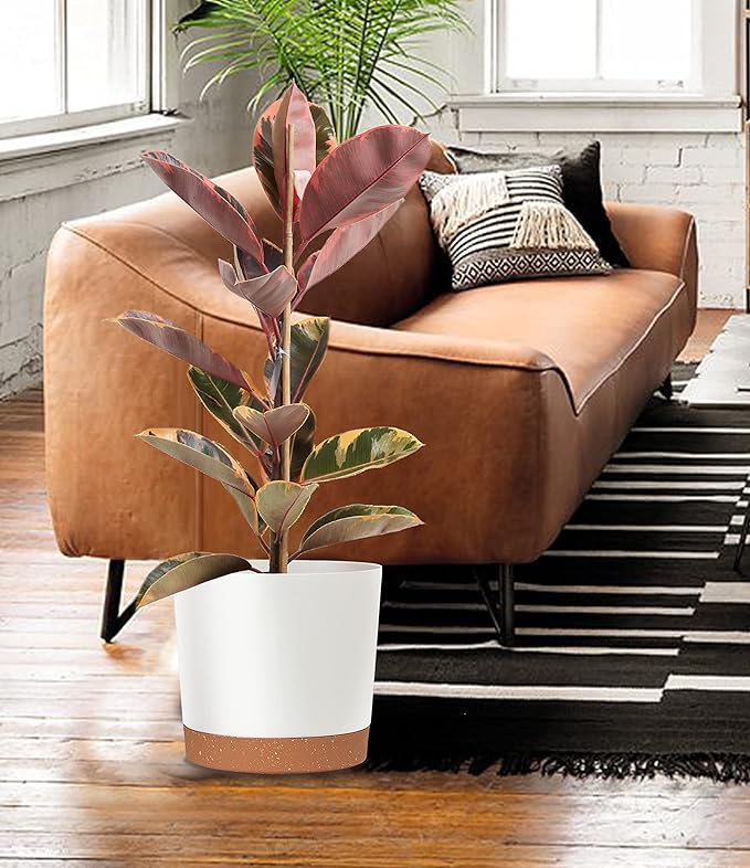 - 【MINIMALIST DESIGN】A simple modern aesthetic and clean matte finish planter pot will match any home or office decor. The light brown rounded trays contrast beautifully with the white or green plant pots for a high-end look