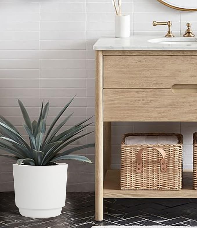 - 【MINIMALIST DESIGN】A simple modern aesthetic and clean matte finish planter pot will match any home or office decor. The light brown rounded trays contrast beautifully with the white or green plant pots for a high-end look