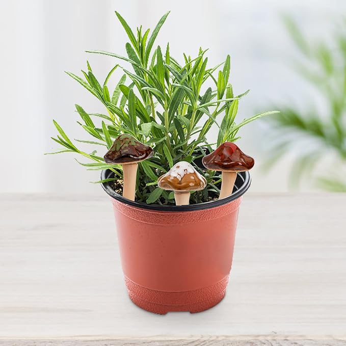 - Smart Package: Include 12 pack ceramic mushrooms in 4 colors, each measures 2" D x 4.7" H. Using it can add a touch of whimsy and much vitality to your patio and garden.