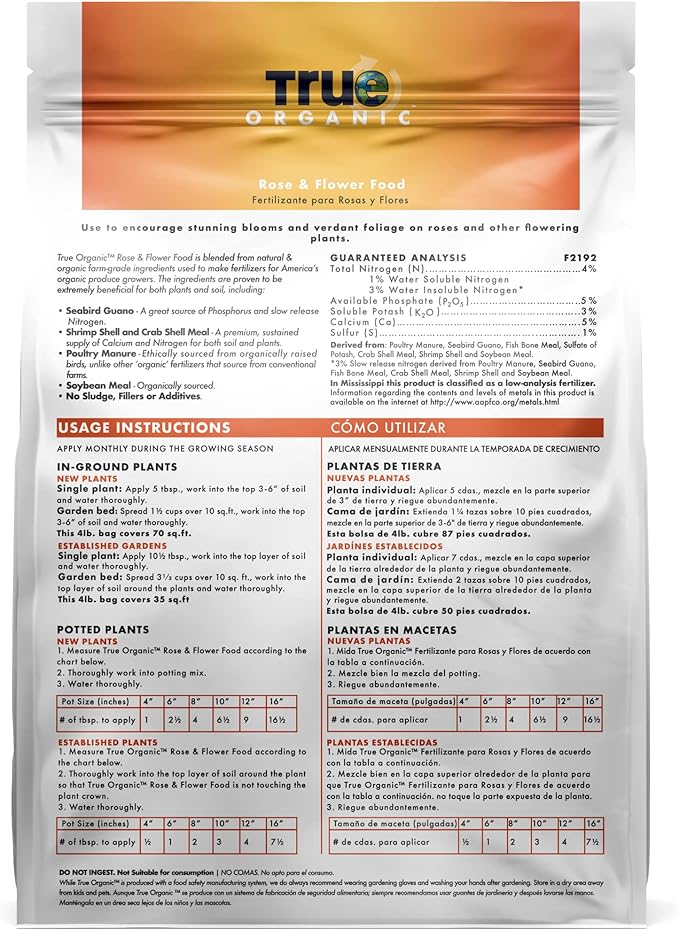 - Vibrant Blooms and Foliage: True Organic Rose & Flower Food promotes stunning, lush blooms and healthy foliage for roses and all flowering plants.